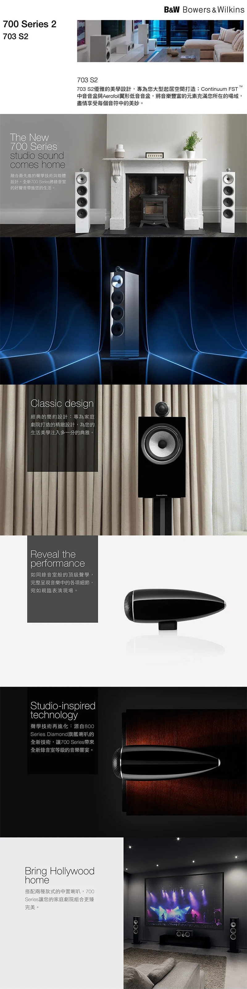 專為您大型起居空間打造,703 S2 3音路氣孔式落地喇叭能帶給您最豐富與真實的聲音響宴。
