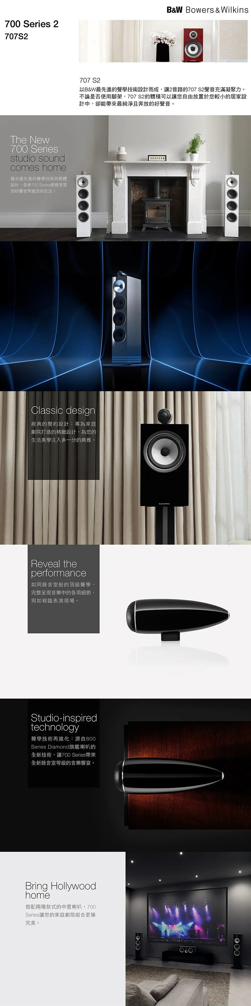 單搭配,不管是否使用腳架,707 S2的好表現可以讓您小型起居空間宛如音樂表演中心。