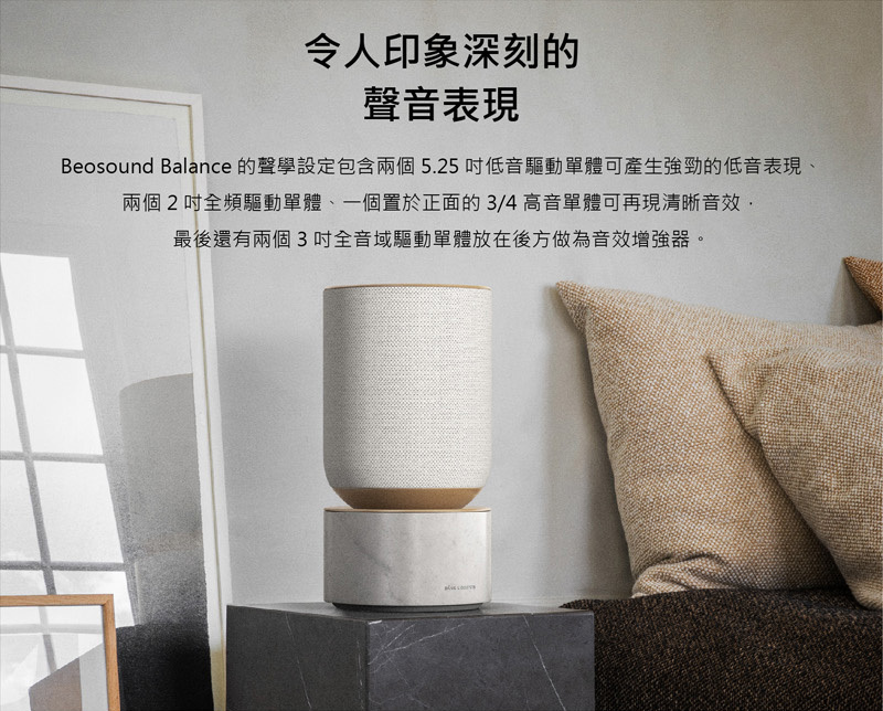 Beosound Balance 的形狀鮮明地合而為一,是室內裝潢物件形態的豪華設計。