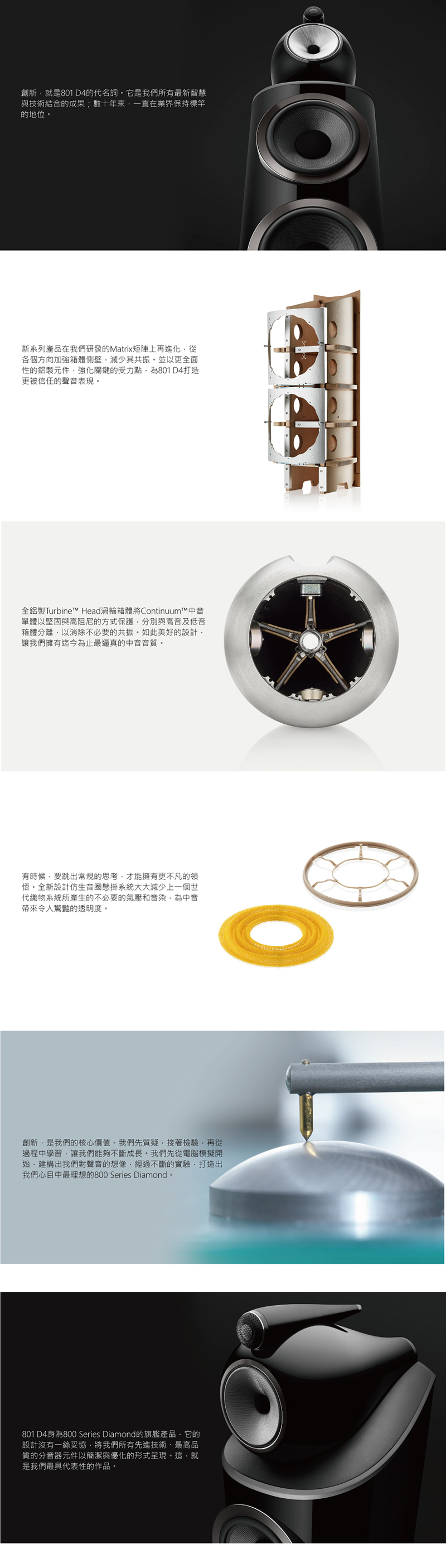 全新800 Series Diamond™技術為一體,監聽等級的801 D4,將在未來數年為業界重新定義高階揚聲器的標準。
