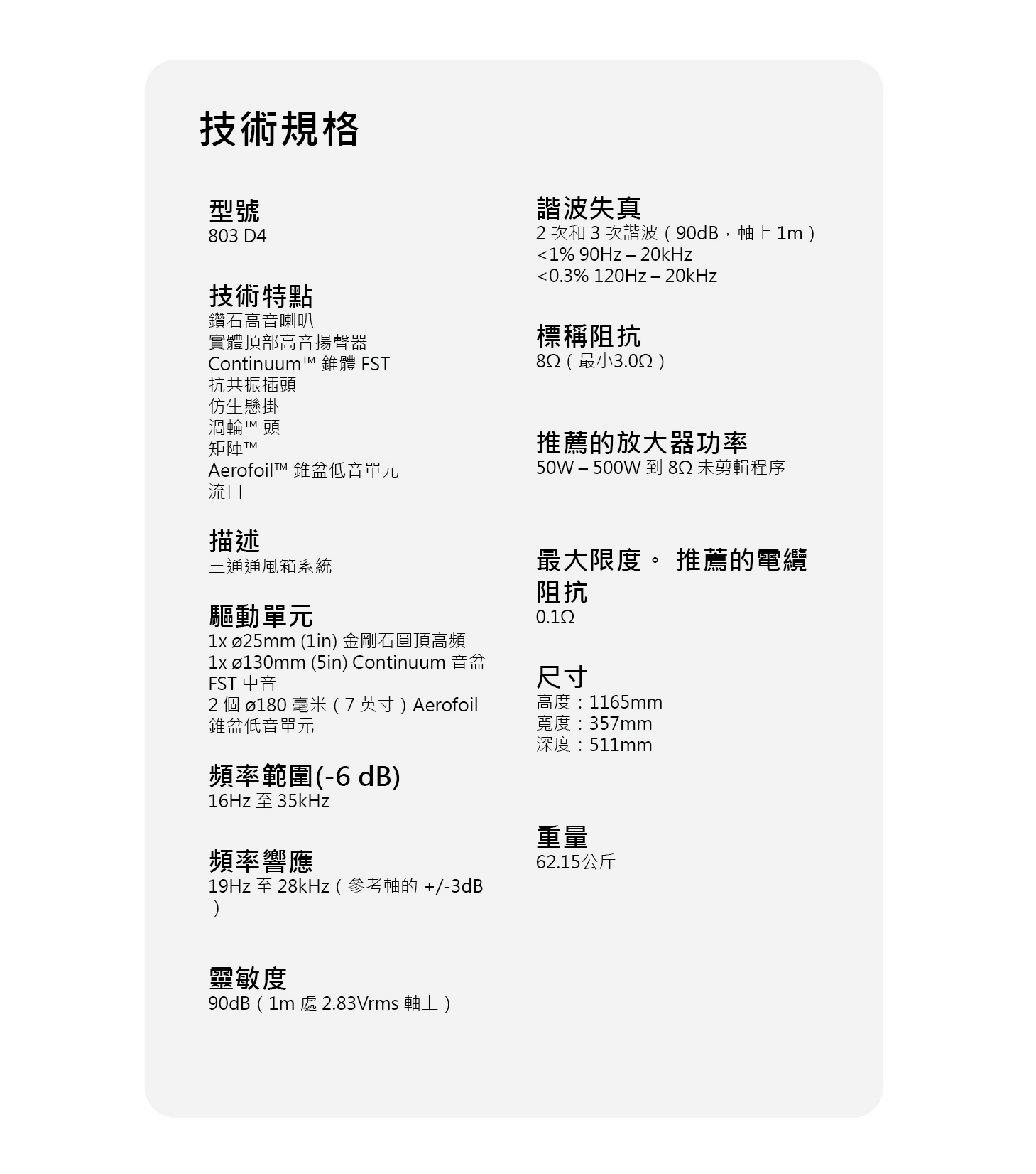 B&W 803 D4 1對