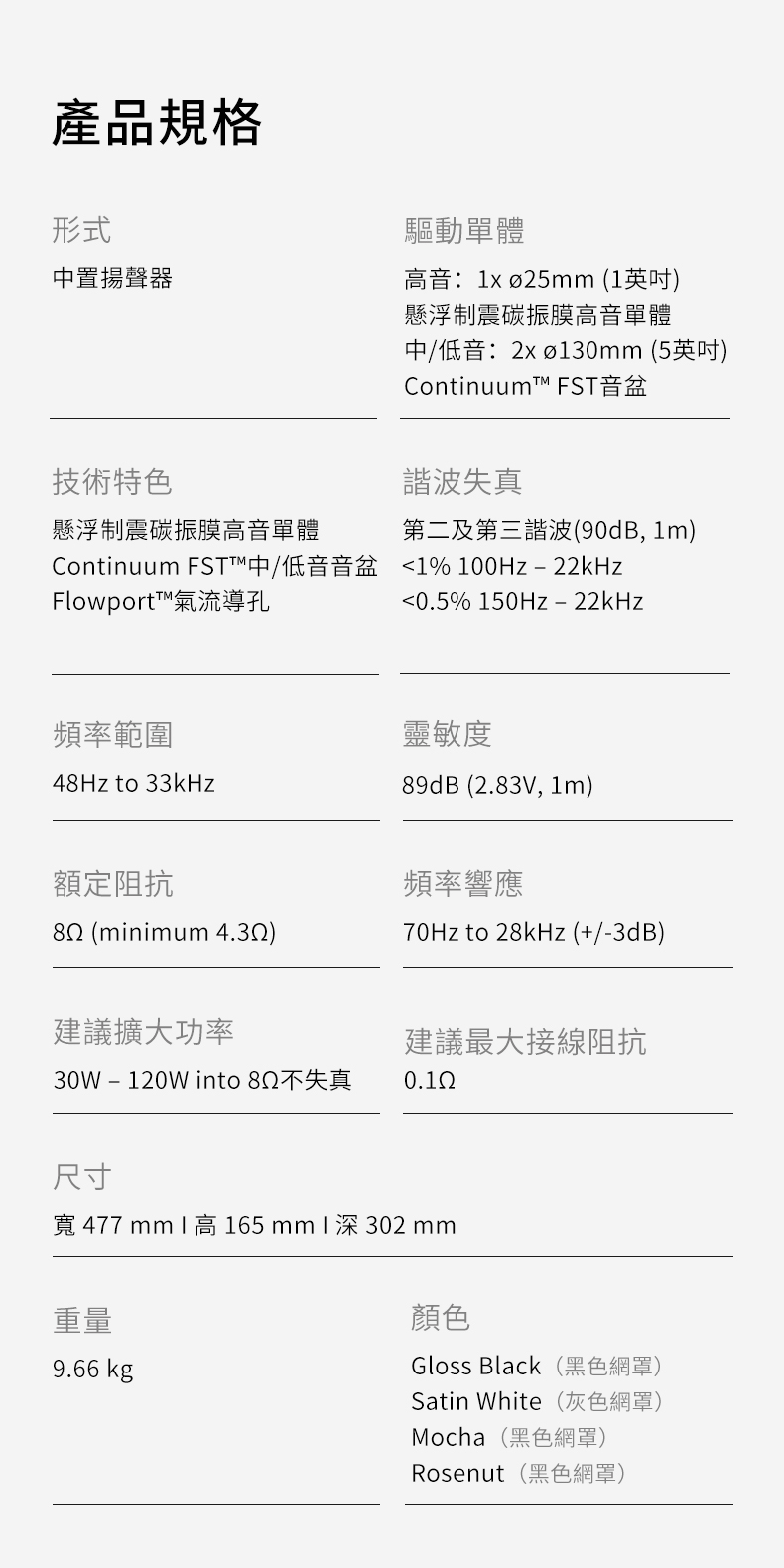HTM72 S3 是新 700 系列中最精緻的中央聲道。它具有碳高音單體與 Continuum FST™中/低音音盆,在較為狹小的空間中,是能輕鬆搭配,但震撼力十足的家庭劇院系統選擇。