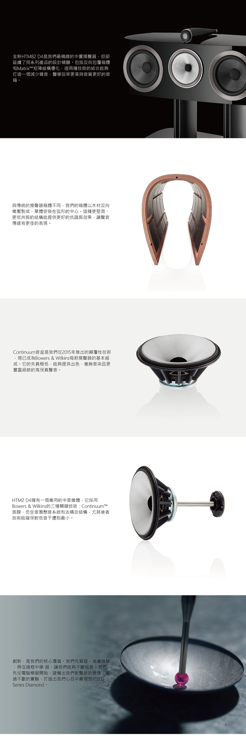 對於基於更緊湊的 803 D4 或 804 D4 的劇院系統,HTM82 D4 中置聲道揚聲器是完美的解決方案。 其更緊湊的中音驅動單元的尺寸與其同類產品相匹配。