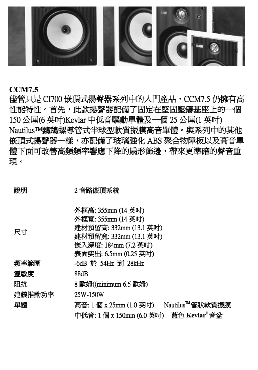 B&W | CCM 7.5 嵌入式喇叭