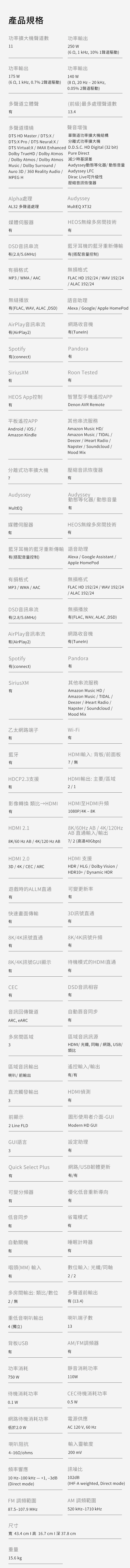 ◾️ 每聲道最高250W (6 ohm, 1 kHz, 10% 1聲道驅動)