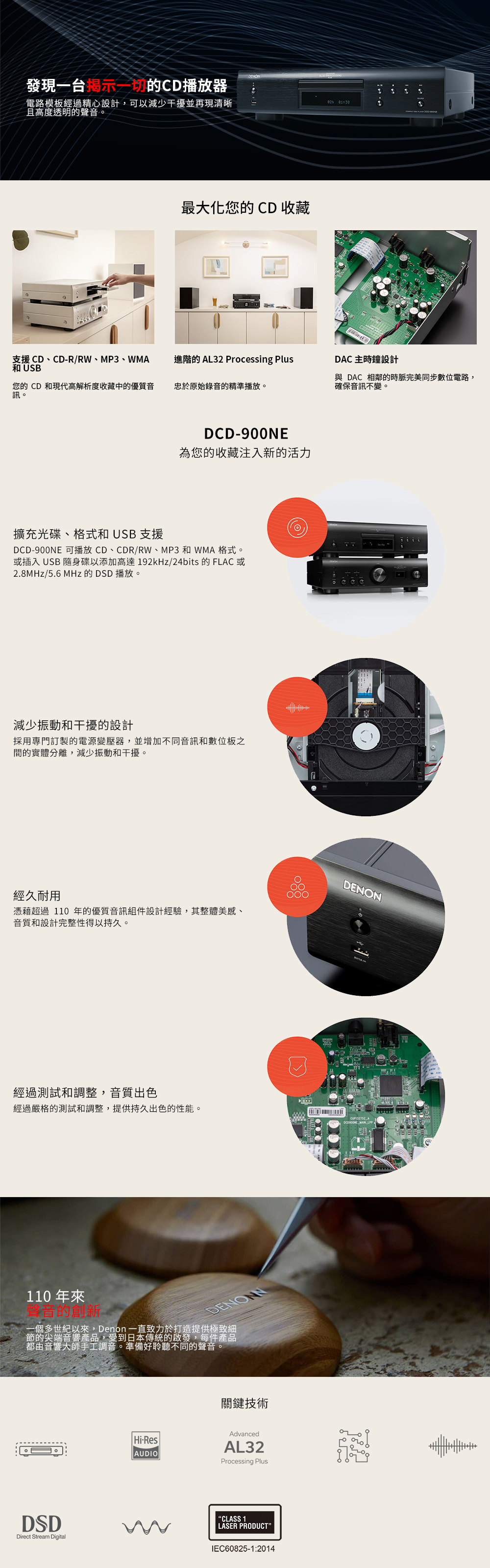 DCD-900NE採用原廠講究的電路設計,能還原細膩的高、低頻細節,是款CD愛好者不容錯過的平價播放器!