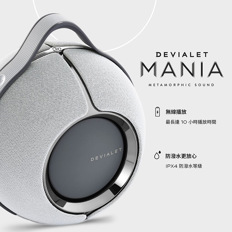 Devialet 推出首款可攜式智慧高保真揚聲器 Devialet Mania,擁有 360° 全方位立體聲,展現對於純淨音質的一貫堅持,並透過自適應立體聲技術,創造絕佳音場,能幻化並融入各種空間。