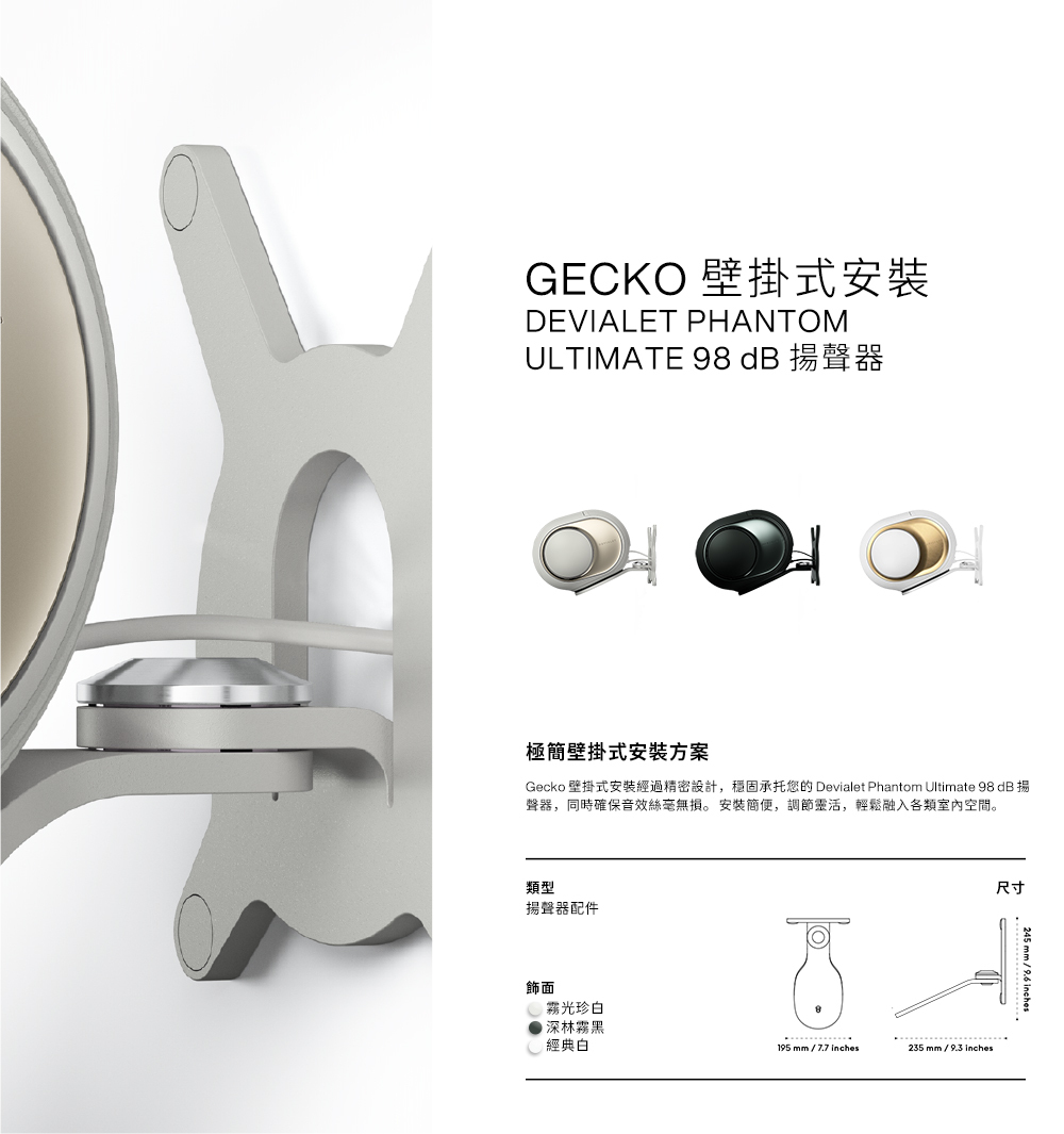 Devialet | Phantom Ultimate 98 dB Gecko 壁掛架 霧光珍白