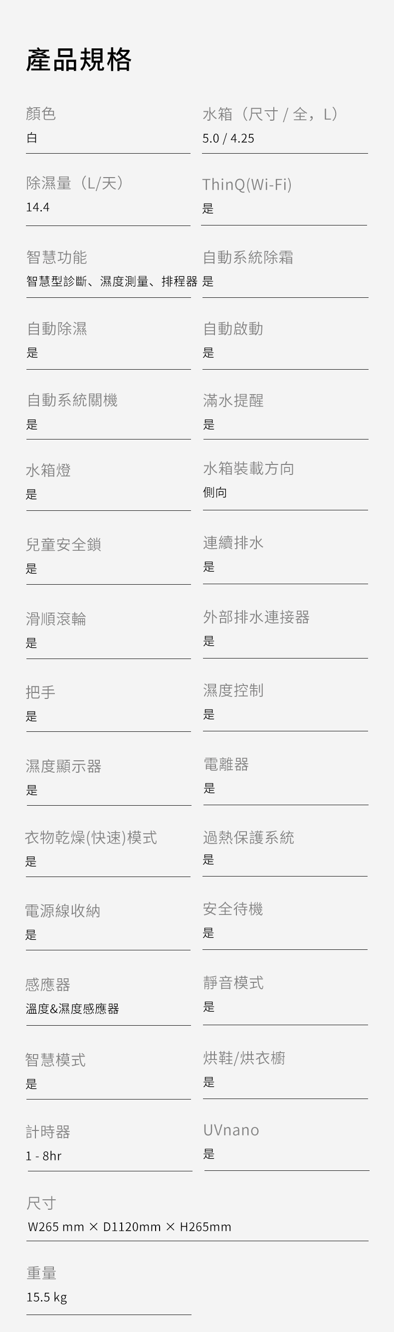 ◾️ 30項安全裝置 | WiFi遠控功能 | 14公升/日除濕量
