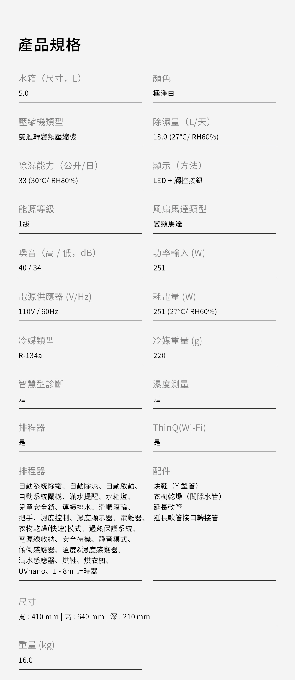 ◾️ 30項安全裝置 | WiFi遠控功能 | 18公升/日除濕量