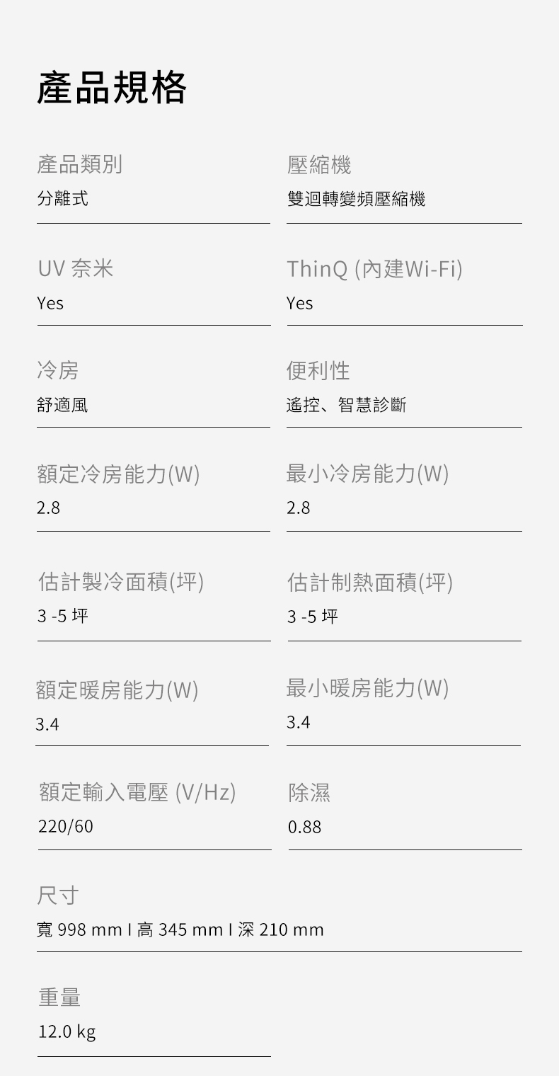 ◾️ 雙迴轉變頻壓縮機 (需另購 LG 室外機)