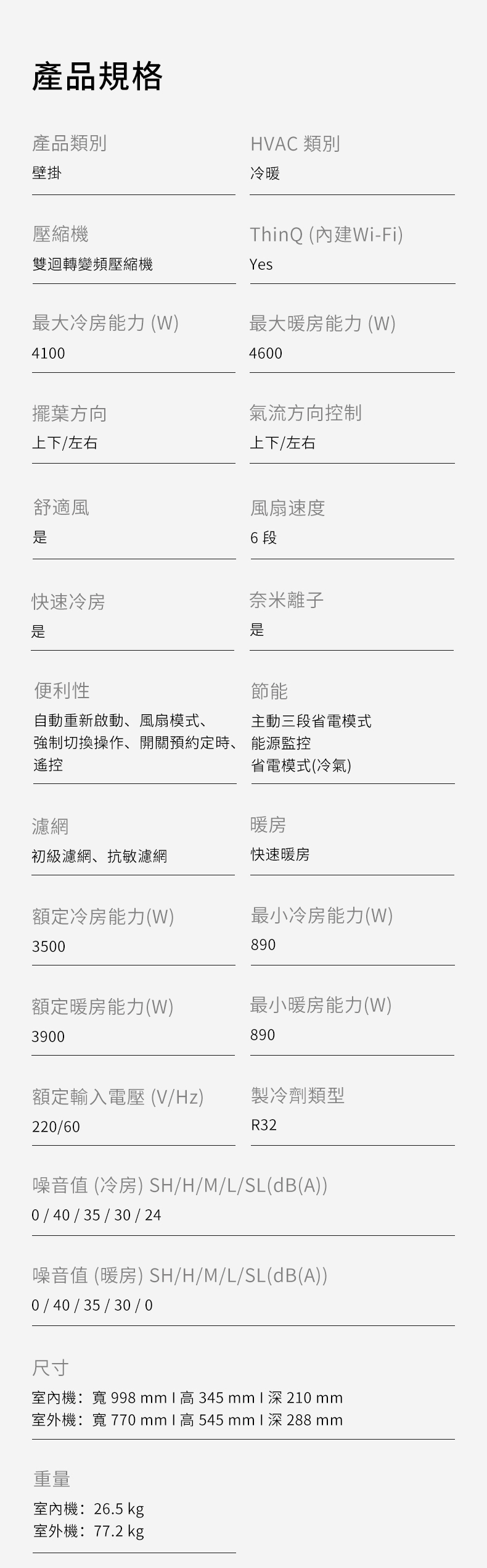 ◾️ 抗鏽蝕金散熱片 (需另購 LG 室外機)