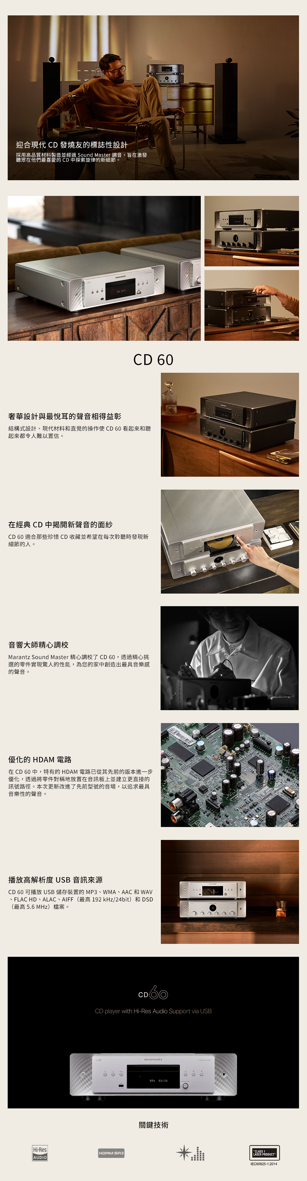 由於視覺設計和相容性技術互補,CD 60成為MODEL 40n、MODEL 30或其他Marantz擴大機的天作之合。