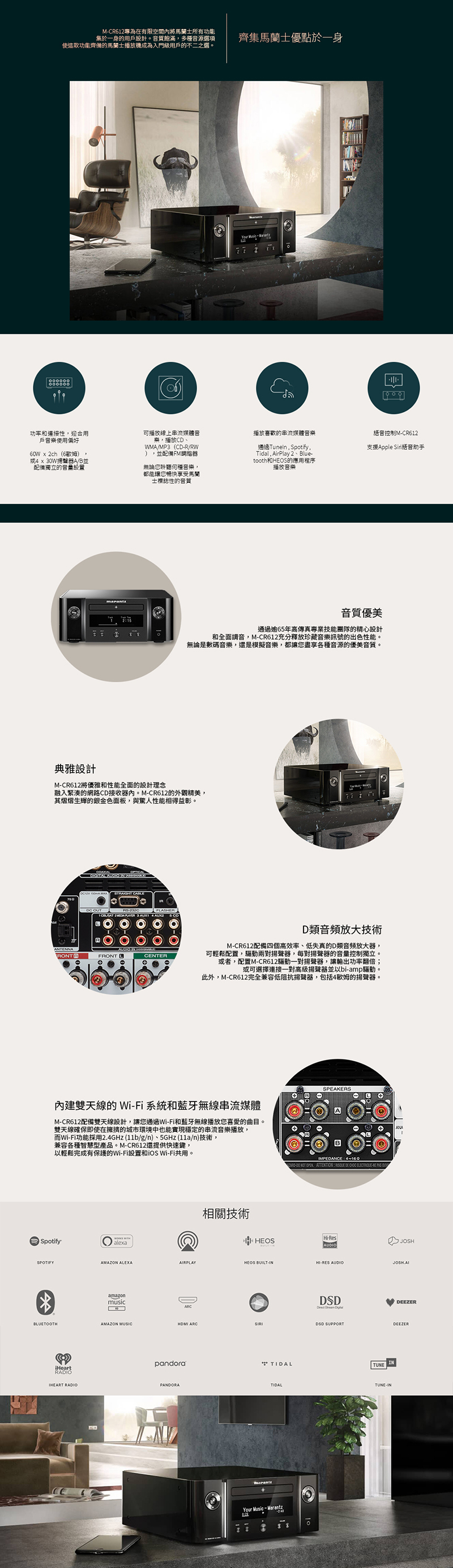 ■ 透過您最喜歡的訊源串流音樂:播放從TuneIn網路收音機、Pandora、Spotify、SiriusXM、Amazon Prime Music、TIDAL 及更多來自 AirPlay2、藍牙和HEOS應用程式的音樂(音樂流服務可能因地區而異)