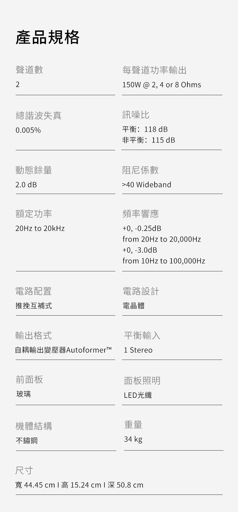 ■ 150W x 兩聲道