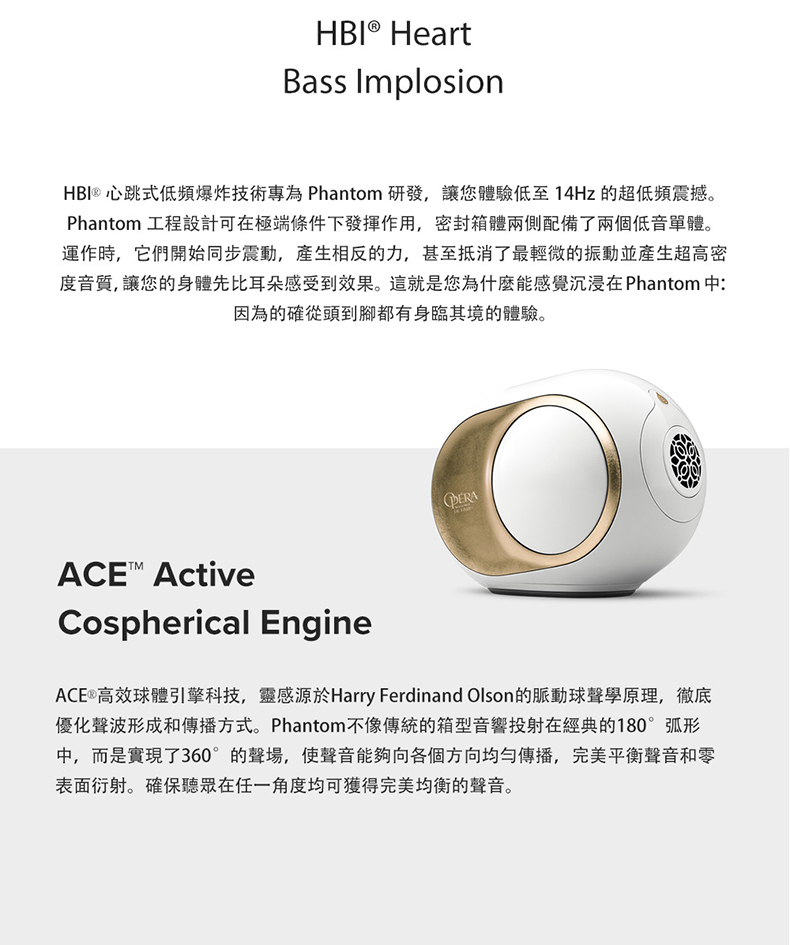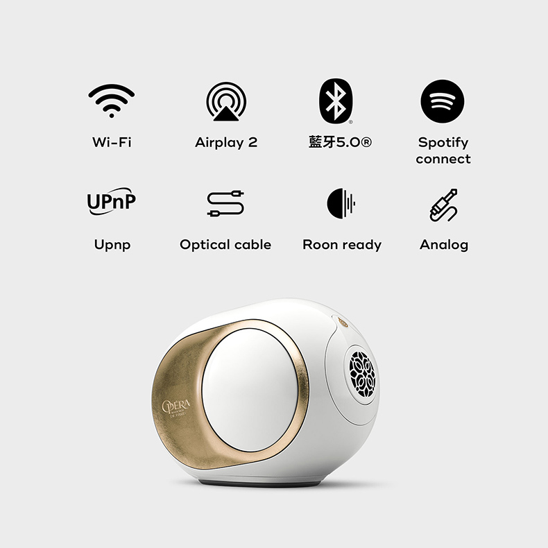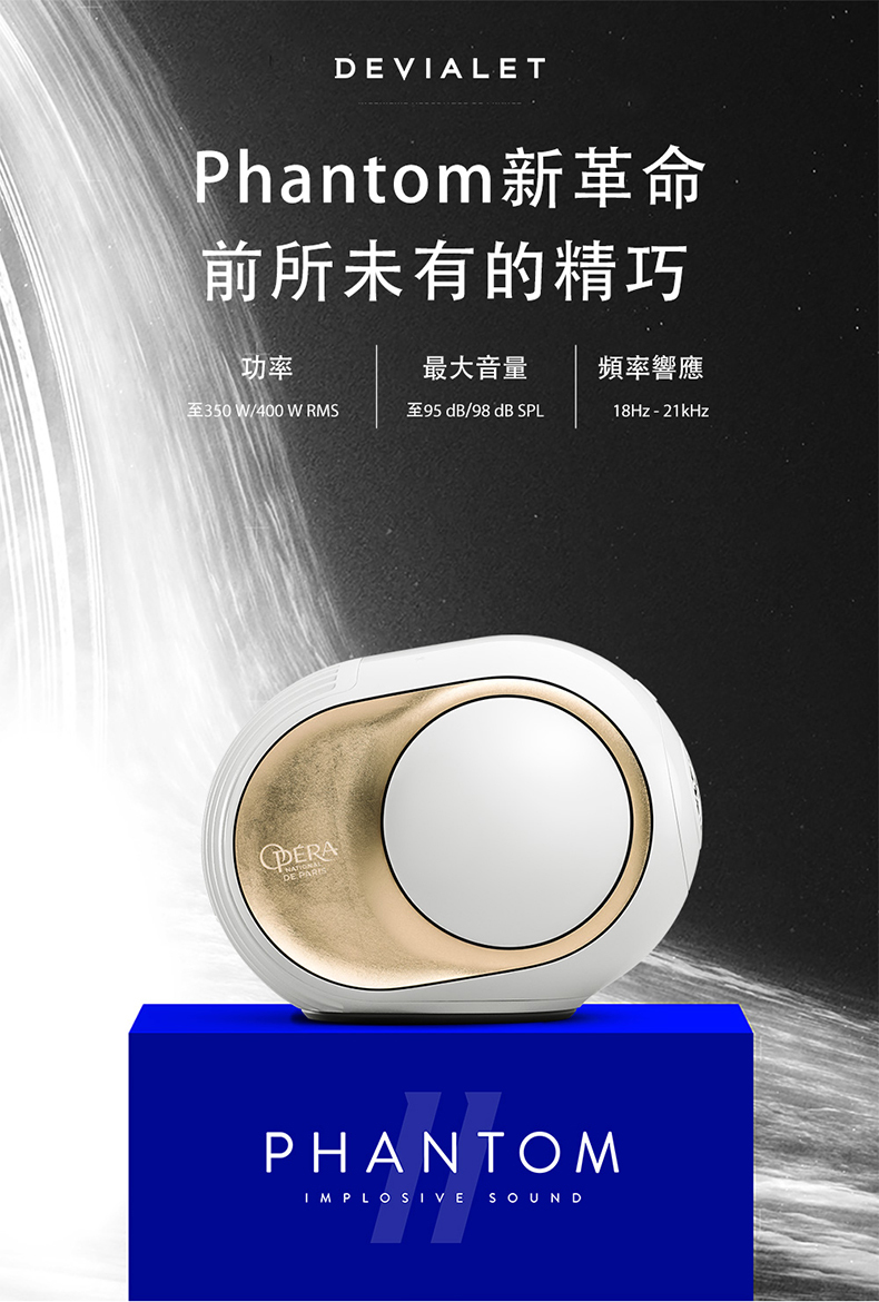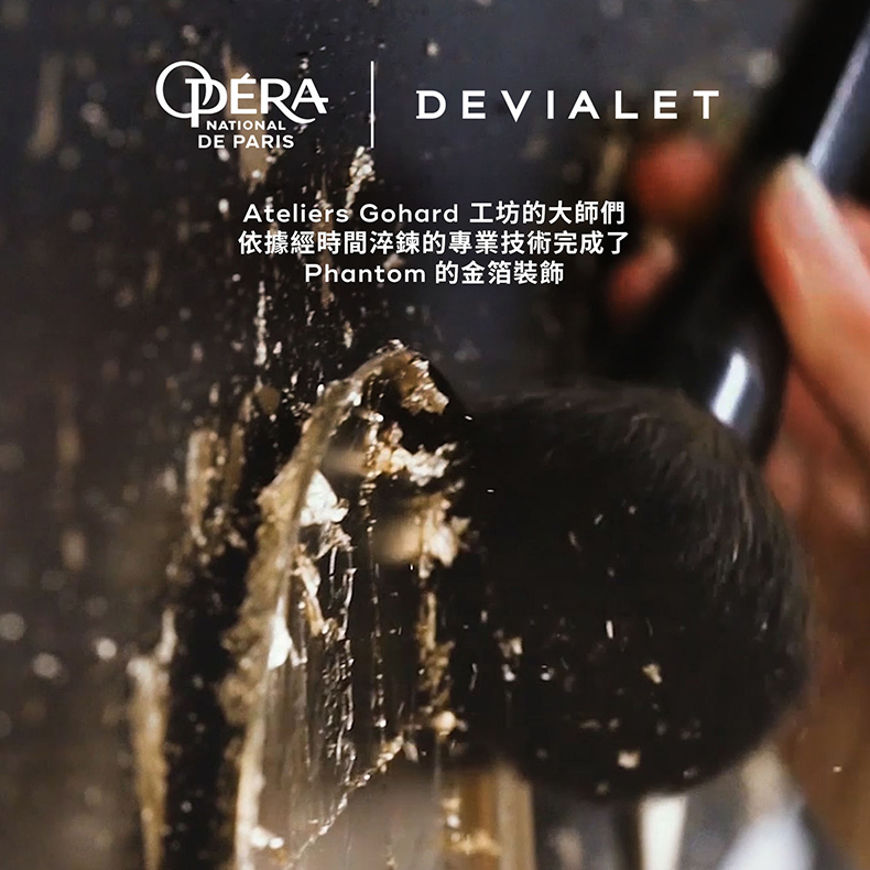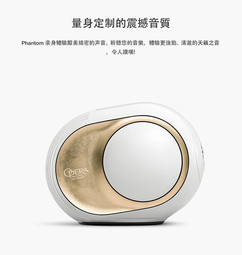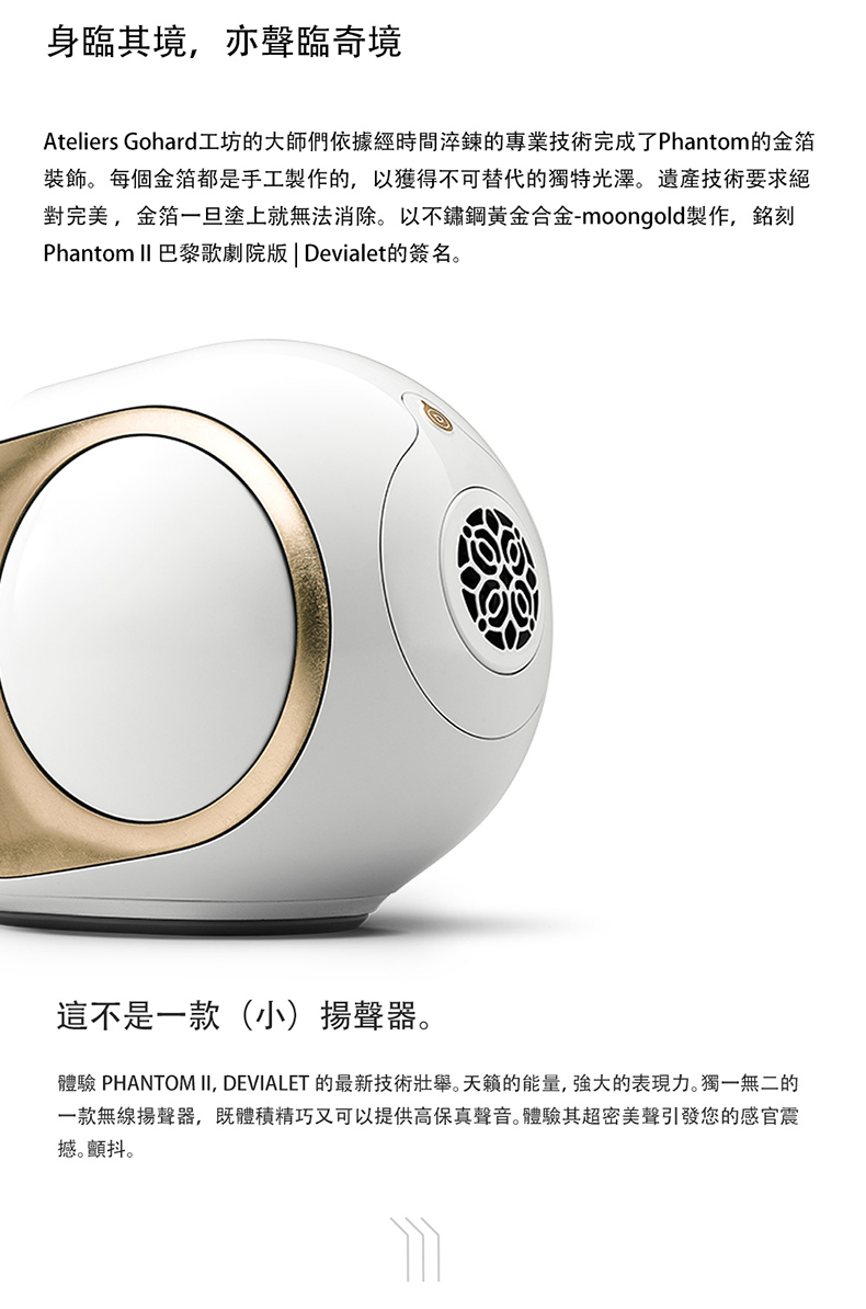 以不鏽鋼黃金合金 - moongold製作,銘刻 Phantom II 巴黎歌劇院版 | Devialet 的簽名。