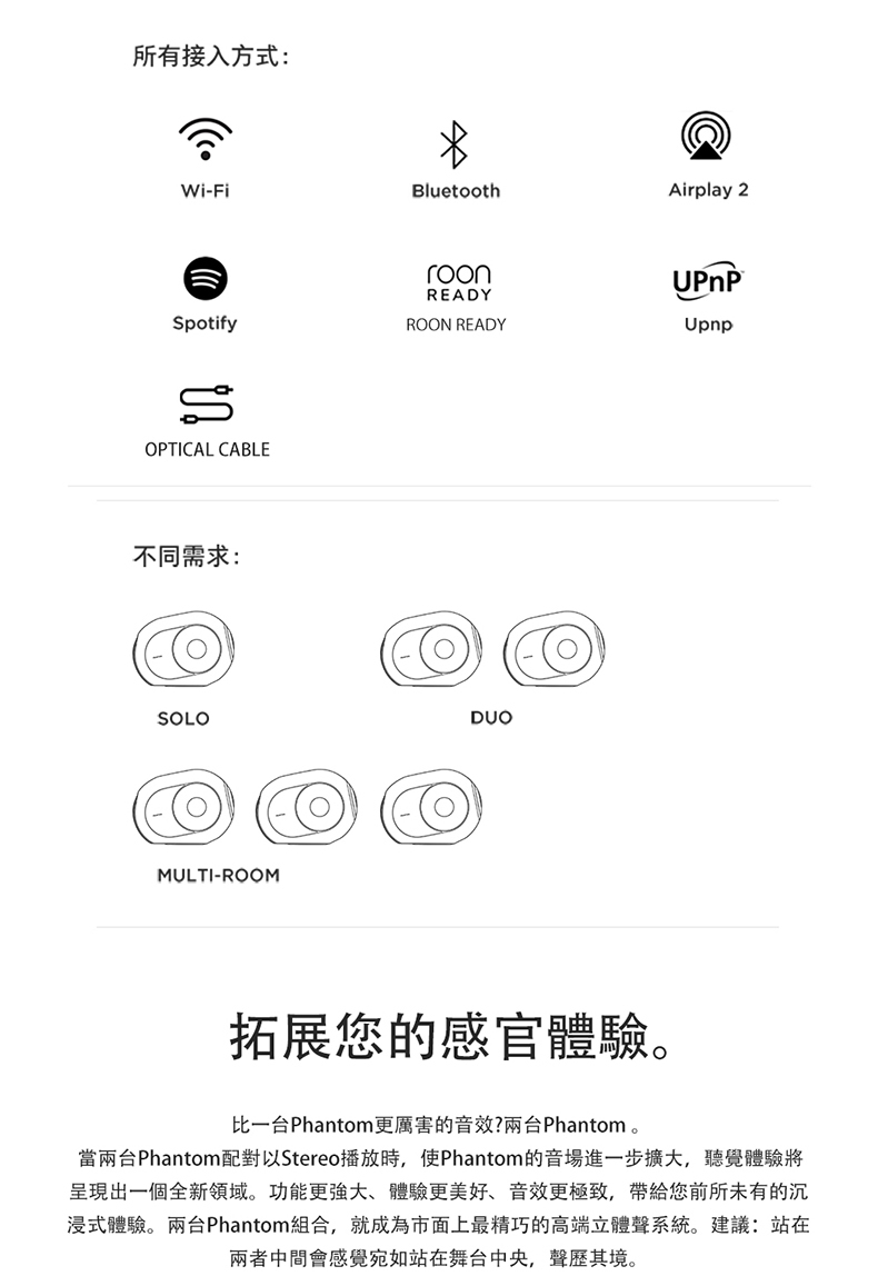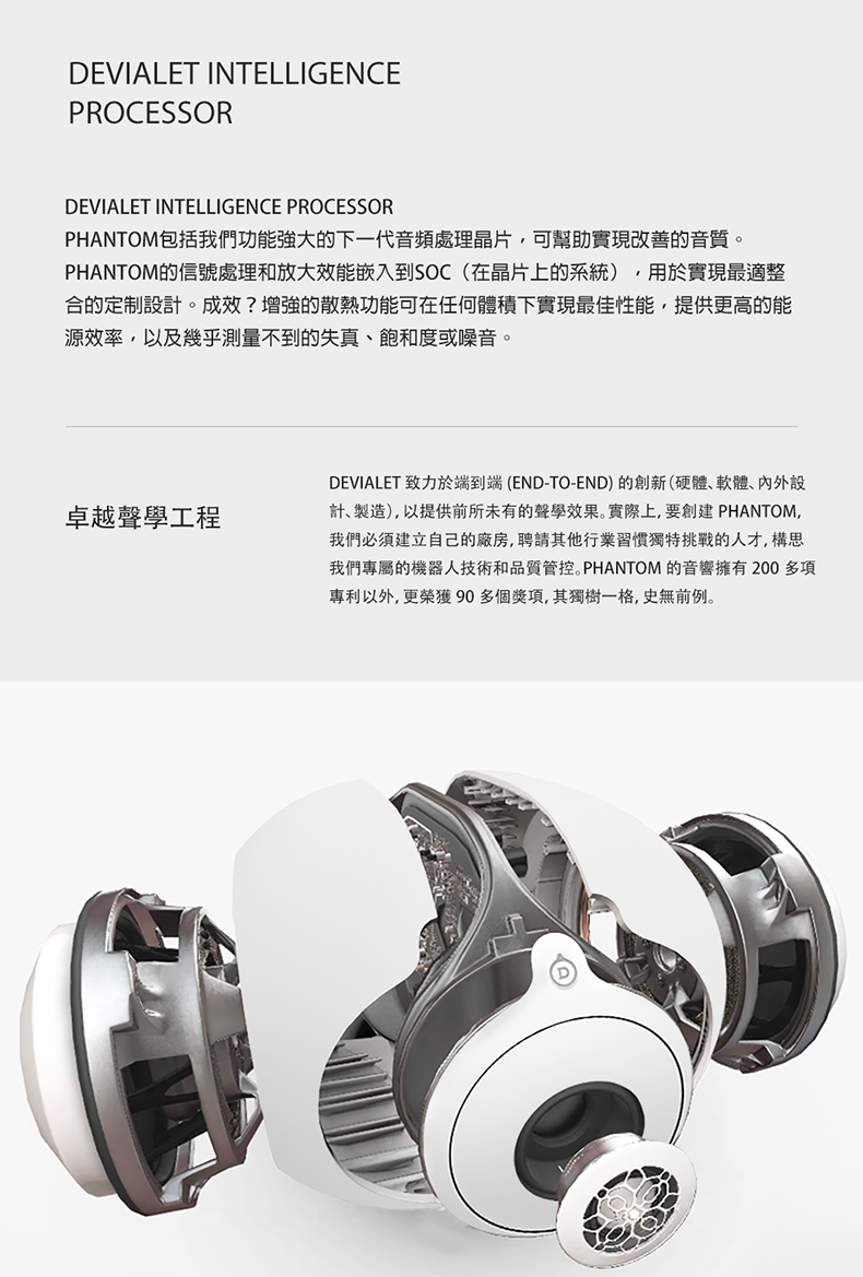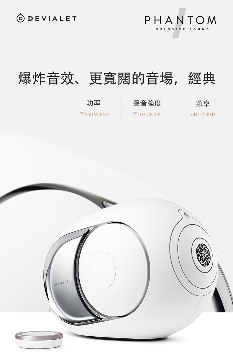 Phantom I 103 dB 採用每個領先的 Devialet 發明,為您帶來高保真和超高密度的聲音,精巧設計適合您的家居。感受前所未有的感官衝擊。